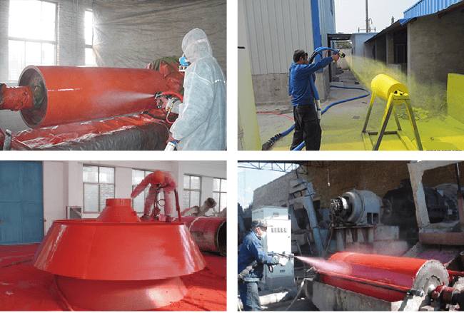 矿山耐磨防腐快射视频网站材料是由异氰酸酯半预聚体、胺类扩链剂、聚醚、颜料以及助剂等主要原料组成的快射视频网站弹性体材料。材料具有优异的耐磨性和防腐性能。是采用新工艺新技术喷涂成型的高性能材料。